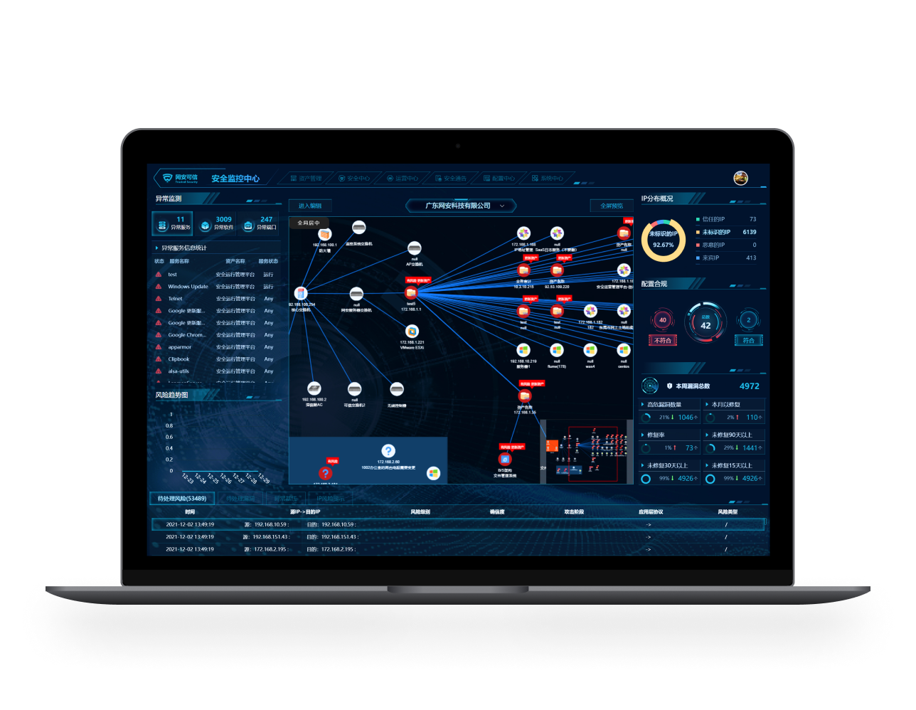 安全運營管理平臺是集資產(chǎn)管理、IP管理、資產(chǎn)處置、基線管理、風(fēng)險管理、漏洞管理、安全通告、運營中心于一體的系統(tǒng),在平臺上解決技術(shù)人員、業(yè)務(wù)人員、管理人在資產(chǎn)管理、項目管理、安全運維、運維巡檢等工作問題